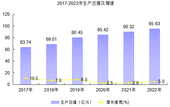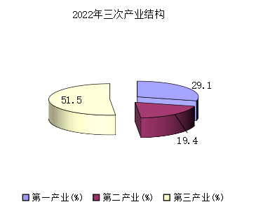 一、二、三產(chǎn)業(yè)增加值占生產(chǎn)總值的比重為:29.1:19.4:51.5。其中:一產(chǎn)業(yè)占比較上年下降1.3個百分點,二產(chǎn)業(yè)占比較上年提高0.9個百分點,三產(chǎn)業(yè)占比較上年提高0.4個百分點。