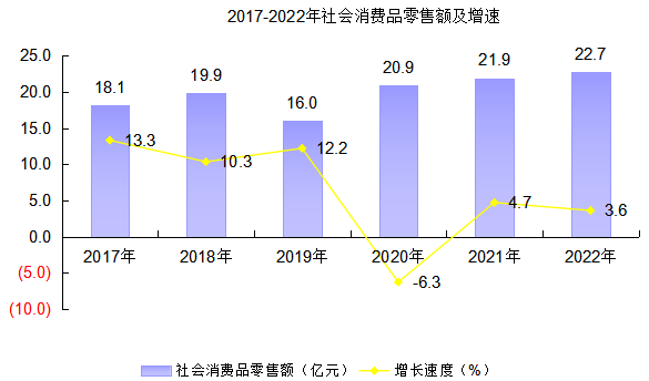 全年實現(xiàn)全社會消費品零售總額227049萬元,比上年增長3.6%。其中:按銷售地域分,城鎮(zhèn)實現(xiàn)社會消費品零售額143419萬元,增長1.8 %;鄉(xiāng)村實現(xiàn)社會消費品零售額83630萬元,增長6.9%。