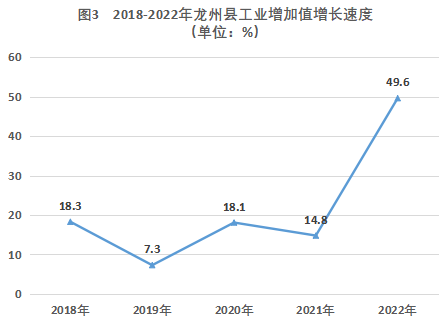 2022年全縣全部工業(yè)增加值21.89億元,比上年增長41.6%。規(guī)模以上工業(yè)增加值同比增長49.6%。在規(guī)模以上工業(yè)中,分門類看,采礦業(yè)增長433.4%,制造業(yè)增長41.2%,電力、熱力、燃氣和水的生產(chǎn)和供應(yīng)業(yè)下降0.7%。分經(jīng)濟類型看,股份制企業(yè)增長49.6%,國有控股企業(yè)增長107.7%,非公有制企業(yè)增長30.9%。輕工業(yè)增長7.7%,重工業(yè)增長83.2%。