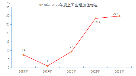 規(guī)模以上工業(yè)增加值比上年增長(zhǎng)29.8%。其中,輕工業(yè)增長(zhǎng)14.5%,重工業(yè)增長(zhǎng)38.8%。分行業(yè)門(mén)類(lèi)看,非金屬礦采選業(yè)下降44.5%,農(nóng)副食品加工業(yè)增長(zhǎng)26.5%,金屬制品業(yè)增長(zhǎng)636.3%,通用設(shè)備制造業(yè)增長(zhǎng)118.8%,專(zhuān)用設(shè)備制造業(yè)增長(zhǎng)179.9%,電力、熱力、燃?xì)饧八纳a(chǎn)和供應(yīng)業(yè)下降52.8%。規(guī)模以上高新技術(shù)產(chǎn)業(yè)實(shí)現(xiàn)增加值10.6億元,比上年增長(zhǎng)26.8%