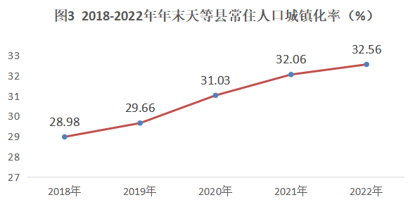 年末全縣常住人口27.86萬人,比上年末減少0.12萬人,其中城鎮(zhèn)人口9.07萬人,占常住人口比重(常住人口城鎮(zhèn)化率)為32.56%,比上年末提高0.5個百分點。