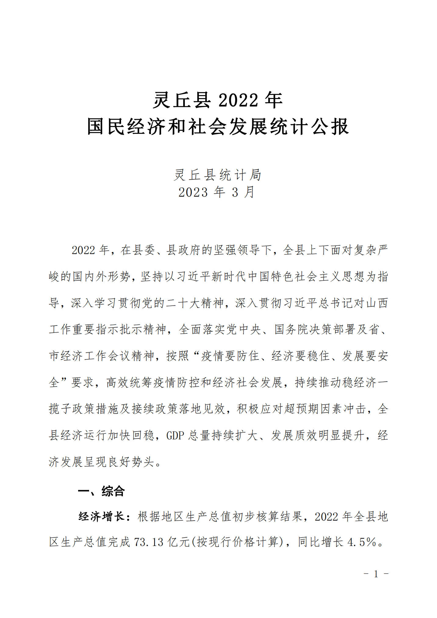 2022年大同市靈丘縣人民政府國(guó)民經(jīng)濟(jì)和社會(huì)發(fā)展統(tǒng)計(jì)公報(bào)(2023年更新)