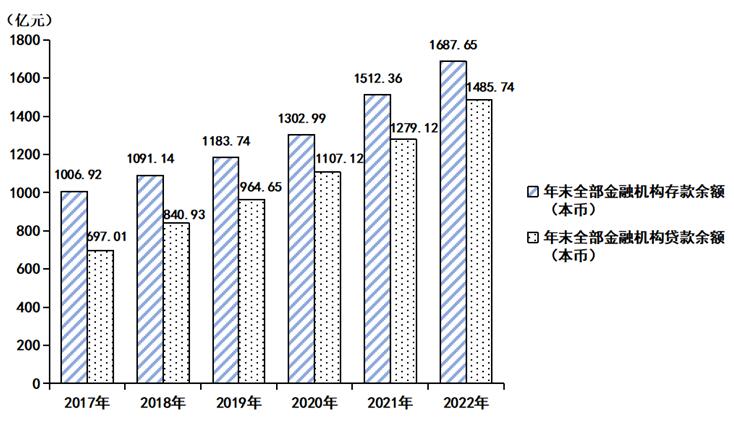 圖6:2017-2022年金融機構(gòu)各項存貸款余額(本幣)