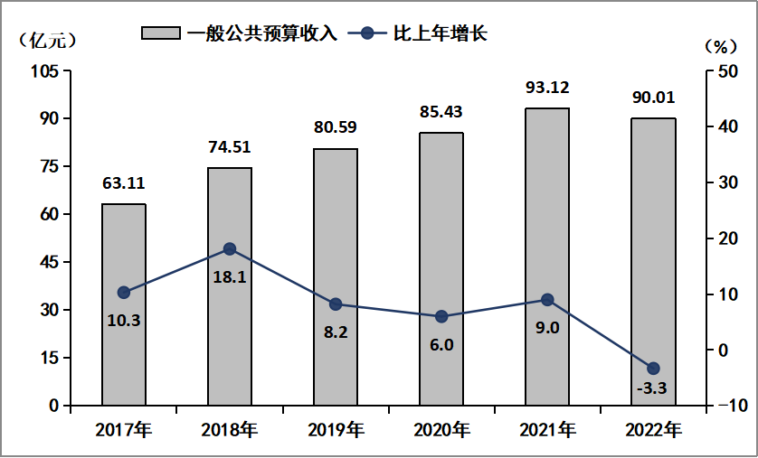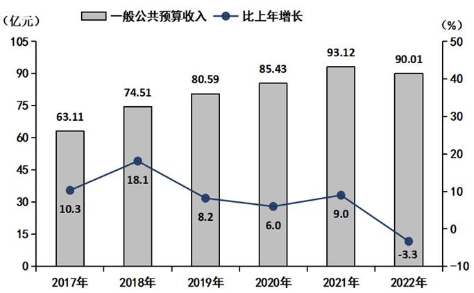 圖5:2017-2022年一般公共預(yù)算收入及增長速度