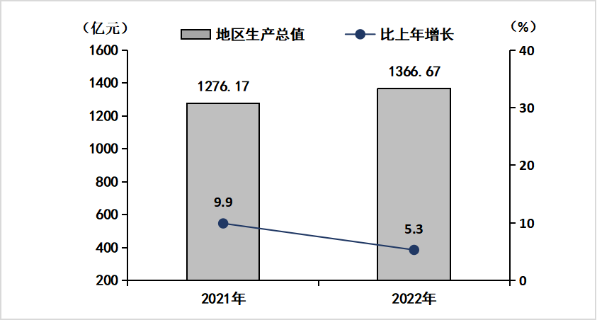 圖1:2021-2022年地區(qū)生產(chǎn)總值及增長速度