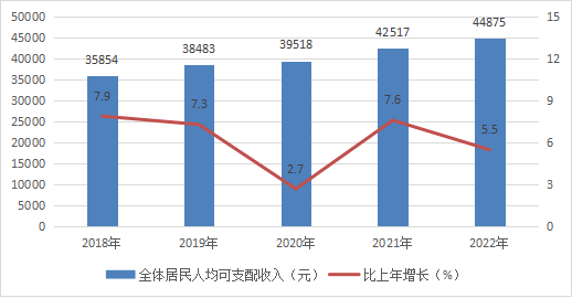 全年全體居民人均可支配收入44875元,比上年增長5.5%。