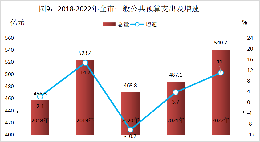 全市一般公共預算支出540.7億元,增長11%。財政用于民生支出435.3億元,增長20.2%,其中教育支出75.2億元,增長5.5%,科學技術(shù)支出40.6億元,增長39.3%,衛(wèi)生健康支出41.1億元,增長5.4%。
