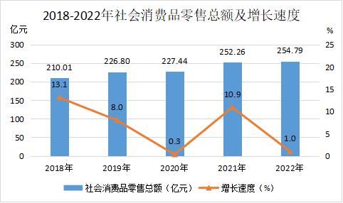 全年社會消費品零售總額254.79億元,比上年增長1.0%。按經(jīng)營地統(tǒng)計,城鎮(zhèn)消費品零售額180.37億元,增長4.1%;鄉(xiāng)村消費品零售額74.43億元,下降5.9%。按消費類型統(tǒng)計,商品零售額220.32億元,增長0.7%;餐飲收入額34.48億元,增長2.8%。