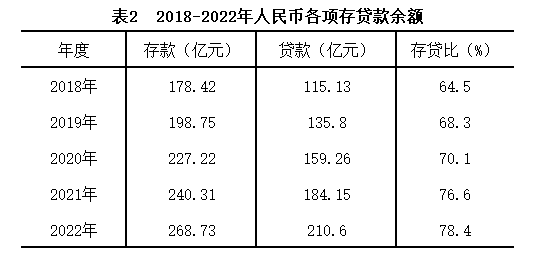 ? ?年末全縣金融機(jī)構(gòu)人民幣各項(xiàng)存款余額268.73億元,同比增長(zhǎng)11.8%。其中,住戶存款余額217.5億元,增長(zhǎng)18.5%;非金融企業(yè)存款余額32.38億元,下降11.4%。年末金融機(jī)構(gòu)人民幣各項(xiàng)貸款余額210.6億元,同比增長(zhǎng)14.4%。其中,短期貸款余額45.09億元,增長(zhǎng)6.4%;中長(zhǎng)期貸款余額47.39億元,增長(zhǎng)9.7%。