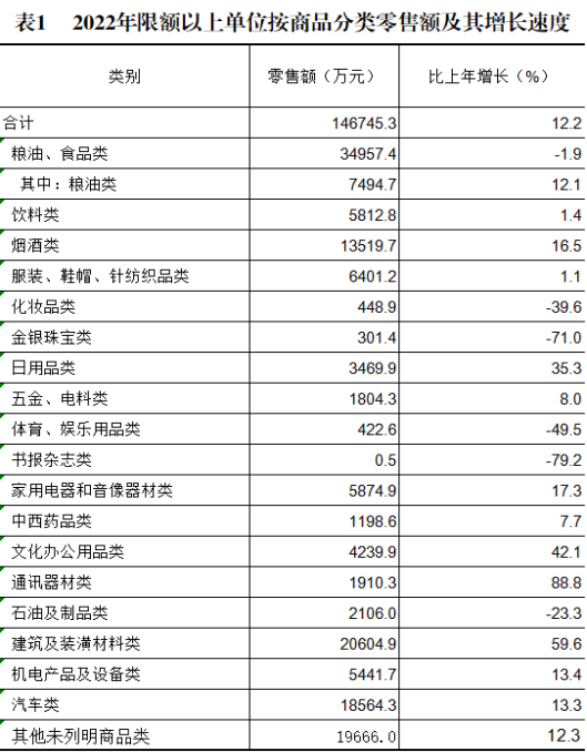 ? ?全年全縣限額以上批發(fā)零售業(yè)零售額146745.3萬(wàn)元,比上年增長(zhǎng)12.2%。其中,糧油、食品類零售額34957.4萬(wàn)元,下降1.9%;服裝、鞋帽、針紡織品類零售額6401.2萬(wàn)元,增長(zhǎng)1.1%;汽車類零售額18564.3萬(wàn)元,增長(zhǎng)13.3%;家用電器和音像器材類5874.9萬(wàn)元,增長(zhǎng)17.3%;通訊器材類1910.3萬(wàn)元,增長(zhǎng)88.8%;建筑及裝潢材料類20604.9萬(wàn)元,增長(zhǎng)59.6%;日用品類3469.9萬(wàn)元,增長(zhǎng)35.3%。