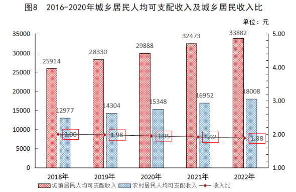 ? ?全年全縣居民人均可支配收入24971元,比上年增長(zhǎng)5.5%。其中,城鎮(zhèn)居民人均可支配收入33882元,增長(zhǎng)4.3%;農(nóng)村居民人均可支配收入18008元,增長(zhǎng)6.2%。城鄉(xiāng)居民收入比1.88:1,比上年縮小0.07。全縣居民人均消費(fèi)支出14273元,比上年增長(zhǎng)6.7%。其中,城鎮(zhèn)居民人均生活消費(fèi)支出17555元,增長(zhǎng)5.1%;農(nóng)村居民人均生活消費(fèi)支出11709元,增長(zhǎng)7.9%。