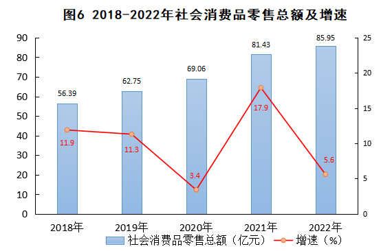 ? ?全年全縣社會(huì)消費(fèi)品零售總額85.95億元,比上年增長(zhǎng)5.6%。分城鄉(xiāng)看,城鎮(zhèn)消費(fèi)品零售額61.08億元,增長(zhǎng)5.7%;鄉(xiāng)村消費(fèi)品零售額24.87億元,增長(zhǎng)5.3%。分行業(yè)看,批發(fā)業(yè)零售額4.61億元,增長(zhǎng)22.4%;零售業(yè)零售額75.42億元,增長(zhǎng)4.7%;住宿業(yè)零售額1.67億元,增長(zhǎng)6.6%;餐飲業(yè)零售額4.25億元,增長(zhǎng)4.8%。
