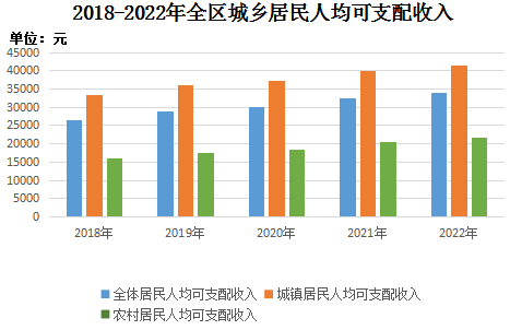 城鄉(xiāng)居民收入持續(xù)增長(zhǎng)。全區(qū)全體居民人均可支配收入33957元,增長(zhǎng)4.3%。其中,城鎮(zhèn)居民人均可支配收入41457元,增長(zhǎng)3.9%;農(nóng)村居民人均可支配收入21602元,增長(zhǎng)5.7%。