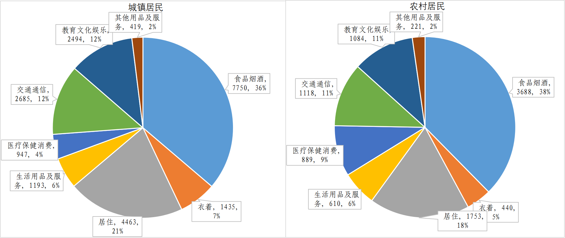 城鎮(zhèn)居民人均生活消費(fèi)支出21386元,下降2.4%。其中,食品消費(fèi)支出7750元,下降3.9%;衣著消費(fèi)支出1435元,下降9.1%;居住消費(fèi)4463元,增長1.4%;生活用品及服務(wù)支出1193元,下降1.8%;醫(yī)療保健消費(fèi)支出947元,下降10.6%;交通和通信消費(fèi)支出2685元,增長2.1%;教育文化娛樂服務(wù)消費(fèi)支出2494元,下降1.8%;其他用品及服務(wù)支出419元,下降1.4%。