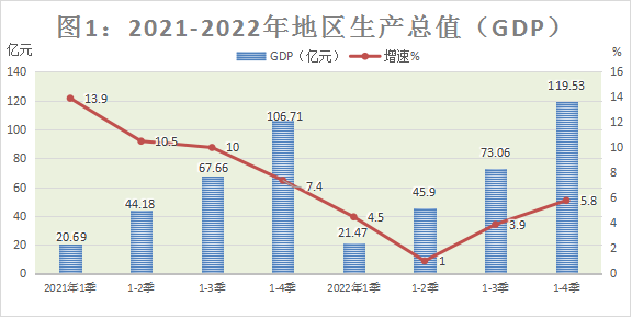 2022年,全縣地區(qū)生產(chǎn)總值完成119.53億元,按可比價格計算,同比增長5.8%。