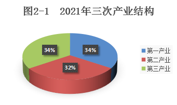其中,第一產(chǎn)業(yè)增加值40.90億元,同比增長7.0%,拉動?GDP增長2.5個百分點(diǎn);第二產(chǎn)業(yè)增加值40.79億元,同比增長8.4%,拉動GDP增速2.4個百分點(diǎn);第三產(chǎn)業(yè)增加值37.85億元,同比增長2.4%,拉動?GDP增長0.9個百分點(diǎn);三次產(chǎn)業(yè)結(jié)構(gòu)為34.2:34.1:31.7,對GDP增長的貢獻(xiàn)率分別為42.8%、42.2%和14.9%。