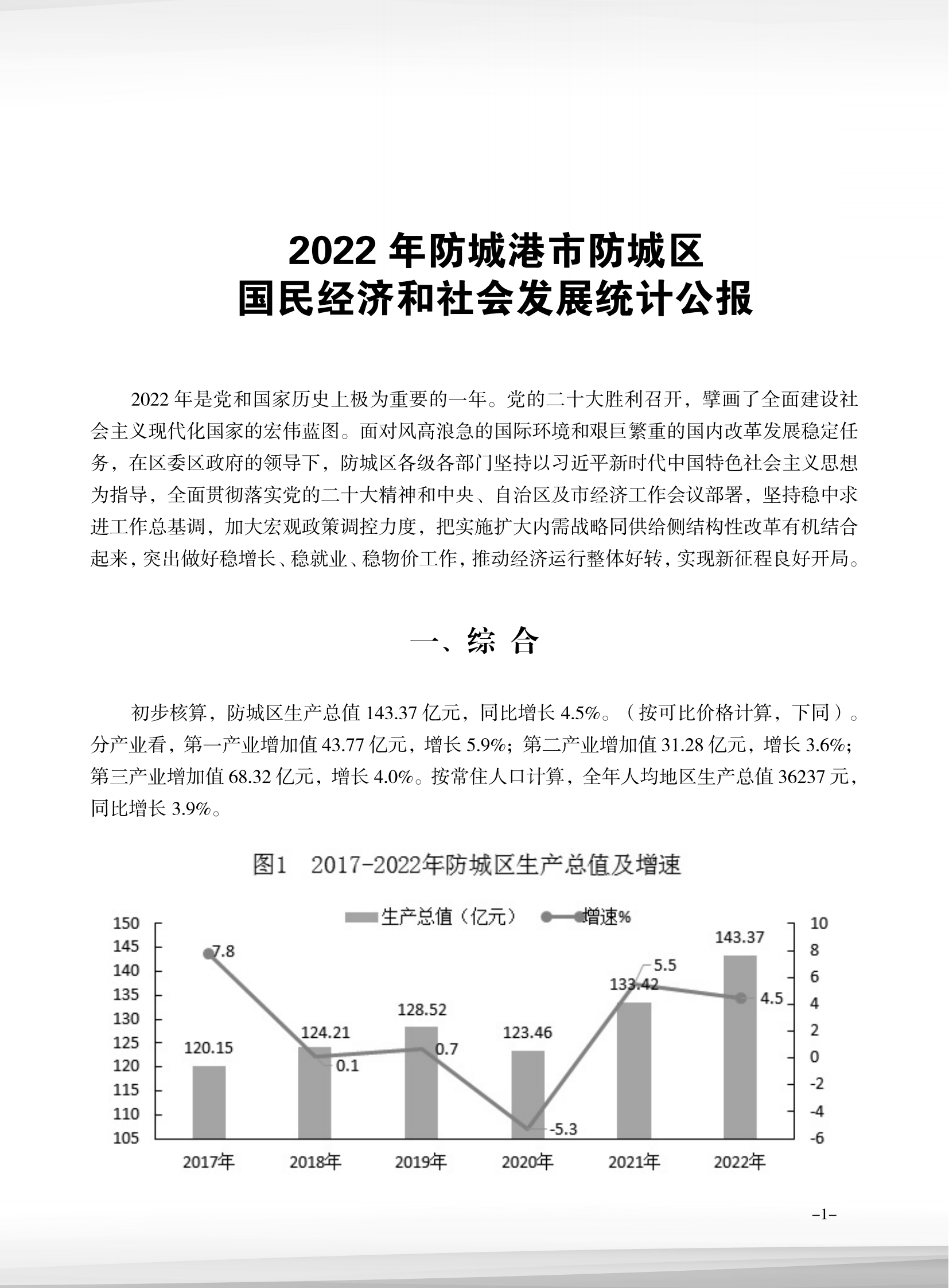 2022年防城港市防城區(qū)人民政府國(guó)民經(jīng)濟(jì)和社會(huì)發(fā)展統(tǒng)計(jì)公報(bào)(2023年更新)