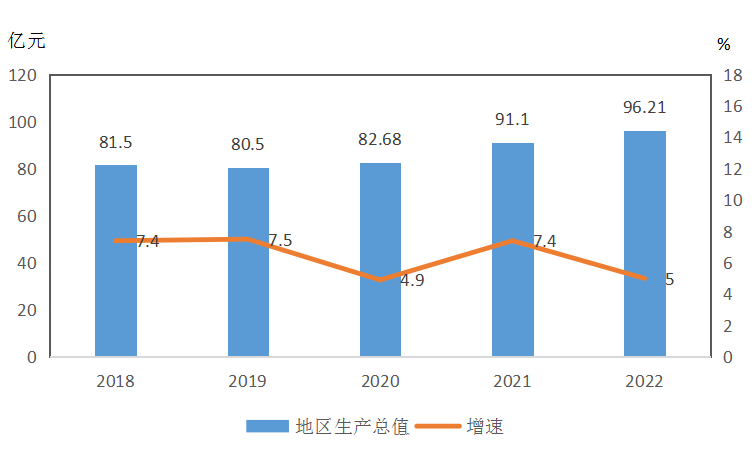 圖1 ?2018-2022年地區(qū)生產(chǎn)總值及增長(zhǎng)速度