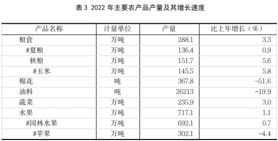 全年全市農(nóng)作物種植面積650.2千公頃,比上年增長0.4%。糧食種植面積539.0千公頃,增長0.5%。其中,夏糧280.8千公頃,下降0.1%;秋糧258.2千公頃,增長1.0%(玉米238.4千公頃,增長0.2%)。棉花種植面積0.2千公頃,下降53.8%;油料種植面積10.4千公頃,下降23.6%;蔬菜及食用菌種植面積52.5千公頃,增長2.3%。果園面積193.3千公頃,下降1.7%,其中,蘋果園面積79.4千公頃,下降5.1%。