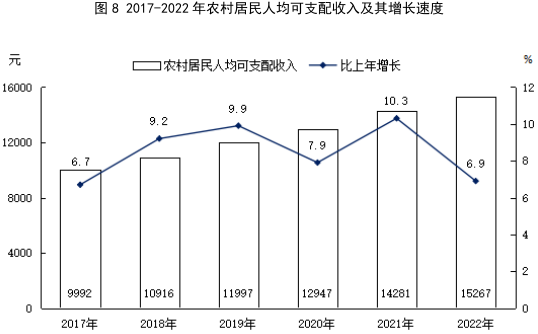 全年全市居民人均可支配收入25474元,比上年增長6.9%。居民人均消費(fèi)支出14358元,比上年增長2.9%。按常住地分,城鎮(zhèn)居民人均可支配收入37479元,增長6.2%;城鎮(zhèn)居民人均消費(fèi)支出17469元,增長0.1%。農(nóng)村居民人均可支配收入15267元,增長6.9%;農(nóng)村居民人均消費(fèi)支出12073元,增長7.0%。