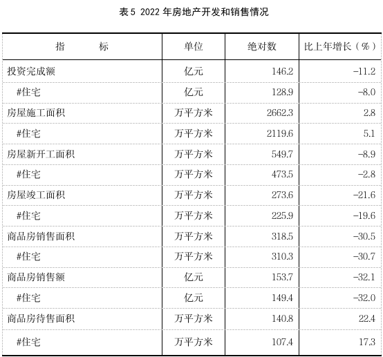 全年全市房地產(chǎn)開發(fā)投資146.2億元,比上年下降11.2%。其中,住宅投資128.9億元,下降8.0%。