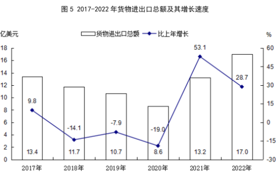 從進(jìn)出口國別和地區(qū)看,對印度尼西亞實(shí)現(xiàn)進(jìn)出口總額6.3億元,增長1.1倍;南非7.7億元,增長63.4%;美國6.5億元,增長49.8%;日本5.0億元,增長39.6%;東盟組織15.8億元,增長54.3%;歐盟組織(含英國)11.8億元,增長79.5%;金磚國家(除中國)11.5億元,增長77.6%;“一帶一路”沿線國家40.1億元,增長72.8%。