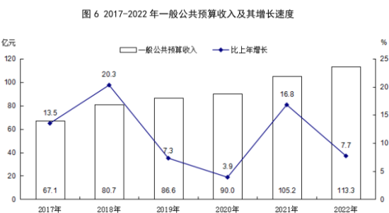全年全市財(cái)政總收入完成203.8億元,比上年下降0.9%。一般公共預(yù)算收入完成113.3億元,增長7.7%。其中,稅收收入完成82.4億元,增長2.7%。全年一般公共預(yù)算支出486.3億元,增長21.9%。其中,民生支出393.7億元,增長20.0%。