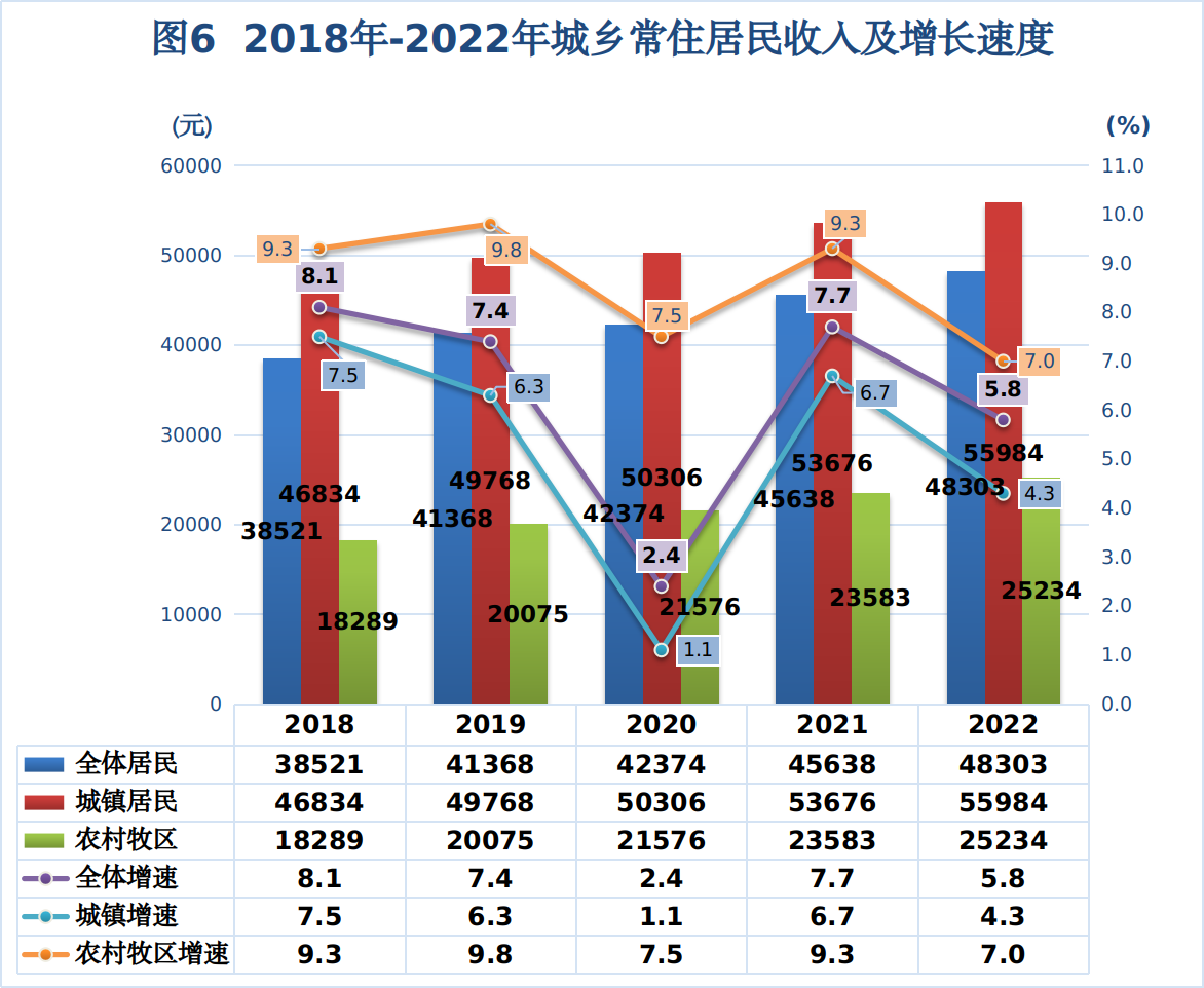 抽樣調(diào)查資料顯示,全體居民人均可支配收入48303元,同比增長5.8%。全體居民人均消費性支出29317元,同比下降0.3%。