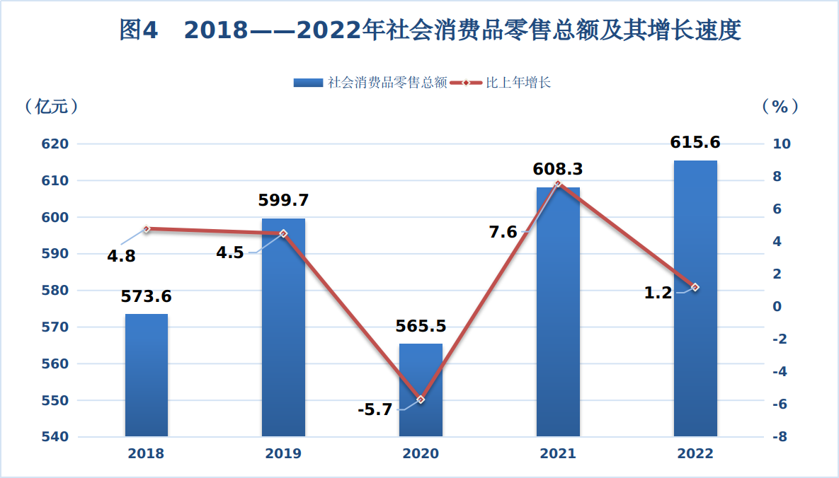 ? 全市實現(xiàn)社會消費品零售總額615.6億元,同比增長1.2%。其中,城鎮(zhèn)消費品零售額544.2億元,同比增長1.2%,鄉(xiāng)村消費品零售額71.4億元,同比增長1.1%。