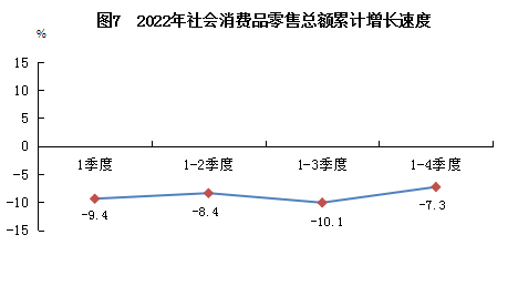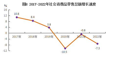 全年實(shí)現(xiàn)社會消費(fèi)品零售總額比上年下降7.3%。按經(jīng)營地統(tǒng)計(jì),城鎮(zhèn)消費(fèi)品零售額下降7.0%;鄉(xiāng)村消費(fèi)品零售額下降7.9%。