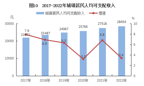 全年城鎮(zhèn)居民人均可支配收入28454元,增長3.4%(名義增長);農(nóng)村居民人均可支配收入16885元,增長6.6%,全年全縣居民人均消費(fèi)12085元,增長1.1%。
