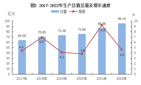 初步核算,全年全縣實(shí)現(xiàn)生產(chǎn)總值96.14億元[2],按可比價計(jì)算,比上年增長4.6%。從產(chǎn)業(yè)看,第一產(chǎn)業(yè)增加值34.53億元,增長4.4%;第二產(chǎn)業(yè)增加值28.17億元,增長1.9%;第三產(chǎn)業(yè)增加值33.44億元,增長6.9%。第一產(chǎn)業(yè)增加值占地區(qū)生產(chǎn)總值比重為35.9%,第二產(chǎn)業(yè)增加值比重為29.3%,第三產(chǎn)業(yè)增加值比重為34.8%。按常住人口計(jì)算,全年人均地區(qū)生產(chǎn)總值48927元,比上年增長4.1%。