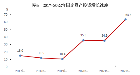 全年固定資產(chǎn)投資比上年增長63.4%。在固定資產(chǎn)投資中,第一產(chǎn)業(yè)投資下降21.2%;第二產(chǎn)業(yè)投資增長64.1%;第三產(chǎn)業(yè)投資下降66.9%。工業(yè)投資增長64.1%?;A(chǔ)設(shè)施投資增長96.3%。房地產(chǎn)開發(fā)投資下降38.8%。