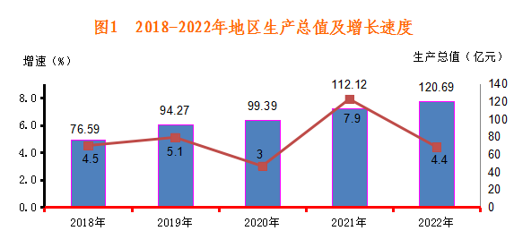 經(jīng)濟(jì)增長:全年地區(qū)生產(chǎn)總值120.69億元,按可比價格計算,同比增長4.4%,人均地區(qū)生產(chǎn)總值36661元。