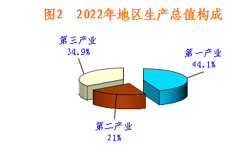 三次產(chǎn)業(yè)的比重為44.1:21:34.9。與2021年比較,第一產(chǎn)業(yè)比重上升0.5個百分點(diǎn),第二產(chǎn)業(yè)比重下降1個百分點(diǎn),第三產(chǎn)業(yè)比重上升0.5個百分點(diǎn)。