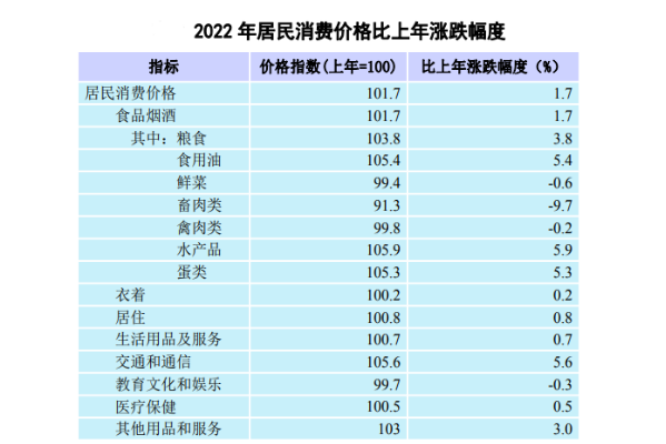 全年居民消費價格比上年上漲1.7%。分類別看,食品煙酒類價格上漲1.7%,衣著類價格上漲0.2%,居住類價格上漲0.8%,生活用品及服務類價格上漲0.7%,交通和通信類價格上漲5.6%,教育文化和娛樂類價格下降0.3%,醫(yī)療保健類價格上漲0.5%,其他用品和服務類價格上漲3.0%。