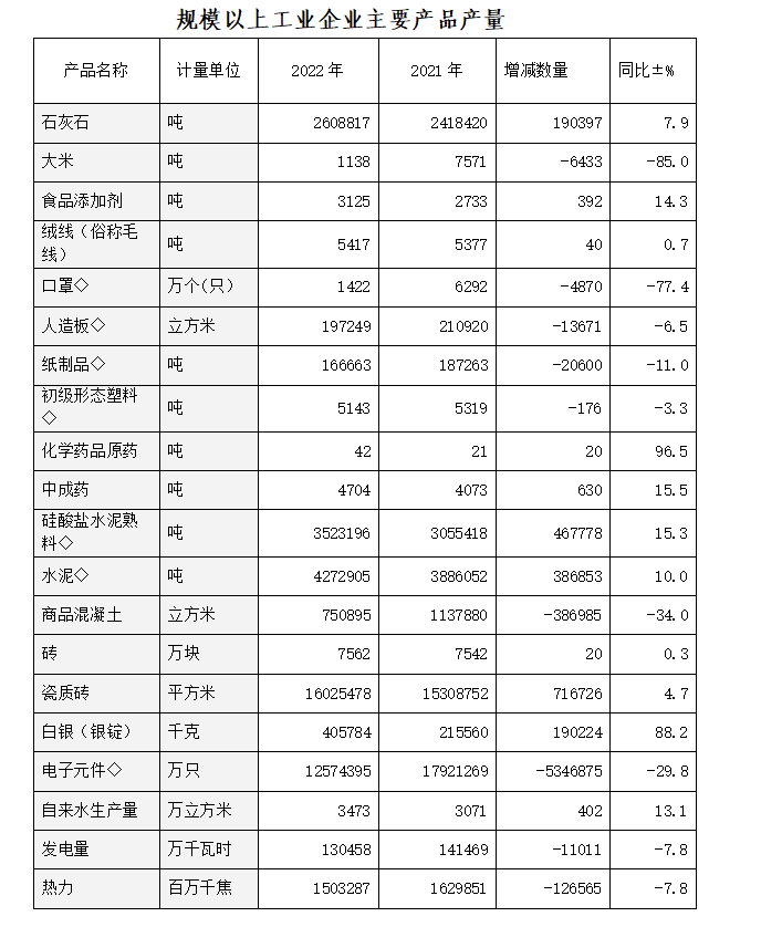 規(guī)模以上工業(yè)企業(yè)主要產品產量