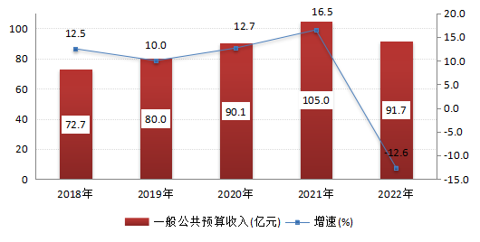 圖3??2018-2022年全區(qū)一般公共預算收入及增速