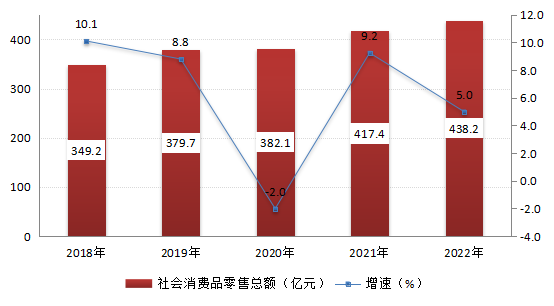 消費需求。全年批發(fā)和零售業(yè)增加值76.3億元,增長8.8%。社會消費品零售總額438.2億元,增長5.0%。限上批零住餐企業(yè)銷售額1561.9億元,增長23.7%。