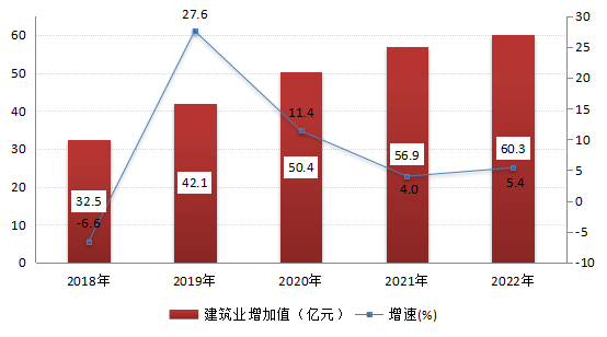 注:2018年-2021年建筑業(yè)增加值為最終核實數(shù),2022年為初步核算數(shù)。