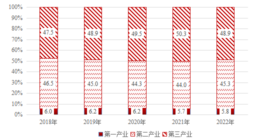 圖2??2018-2022年三次產(chǎn)業(yè)增加值占GDP比重