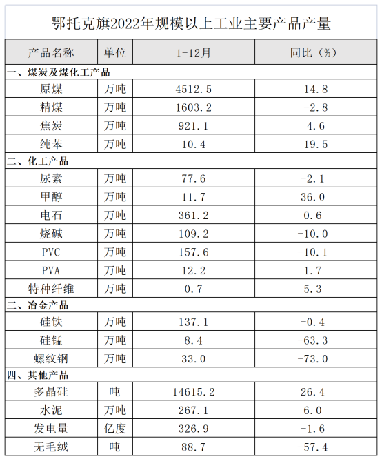 鄂托克旗2022年國民經(jīng)濟和社會發(fā)展統(tǒng)計公報