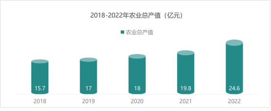 2022年,全旗現(xiàn)價農(nóng)林牧漁及服務業(yè)總產(chǎn)值24.6億元,按可比價格計算,同比增長7.5%,增速排名全市第一。其中農(nóng)業(yè)總產(chǎn)值9.9億元,同比增長7.8%;林業(yè)總產(chǎn)值0.78億元,同比增長10.5%;牧業(yè)總產(chǎn)值 12.9億元,同比增長2.9%;漁業(yè)總產(chǎn)值0.36億元,同比增長11.1%;農(nóng)林牧漁服務業(yè)總產(chǎn)值0.62億元,同比增長15.6%。