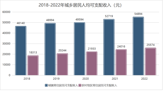 2022年城鎮(zhèn)常住居民人均消費性支出24610元,同比下降0.2%,農(nóng)村牧區(qū)常住居民人均消費性支出19881元,同比下降2.4%。