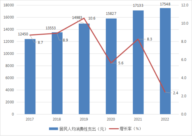 全縣居民人均消費性支出17548元,增長2.4%。其中城鎮(zhèn)居民人均消費性支出20247元,比上年增長3.5%;農(nóng)村居民人均消費性支出15993元,比上年增長1.3%。