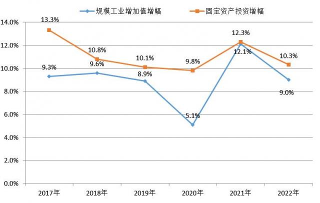 圖4:2017年—2022規(guī)模工業(yè)增加值和固定資產(chǎn)投資增幅情況