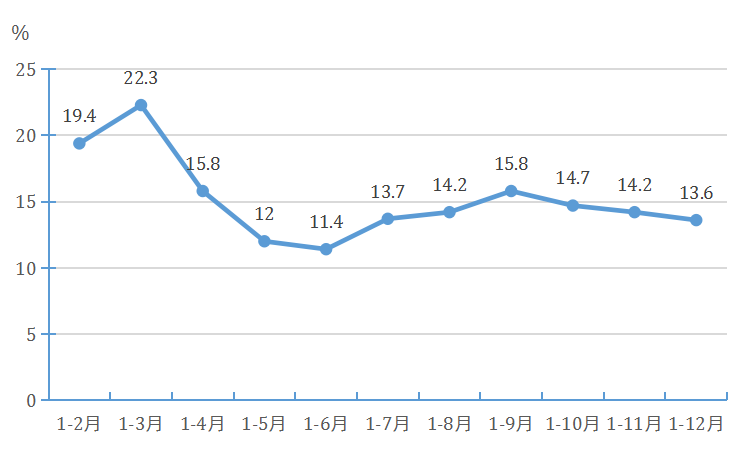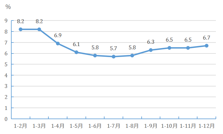 圖8:2022年固定資產(chǎn)投資各月累計(jì)增長速度(%)