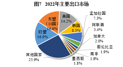 全年貨物進出口總額15.33億元,比上年下降51.2%。其中,出口15.29億元,下降51.2%;進口0.03億元,下降35.9%。主要出口貿(mào)易國家、組織(或地區(qū))為歐盟、東盟(10國)、美國、韓國、孟加拉國、阿聯(lián)酋、加拿大、哥倫比亞、南非和墨西哥。