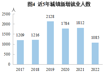 全年城鎮(zhèn)新增就業(yè)1085人,比上年減少727人。年末城鎮(zhèn)登記失業(yè)率為1.40%,3月末、6月末、9月末分別為1.98%、1.99%、1.45%,低于3.0%的調(diào)控目標。