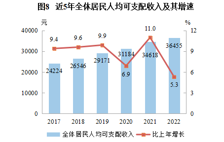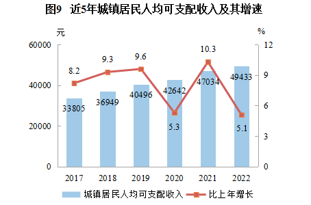| 人均可支配收入 | 36455 | 5.3 | 49433 | 5.1 | 23759 | 5.3 |